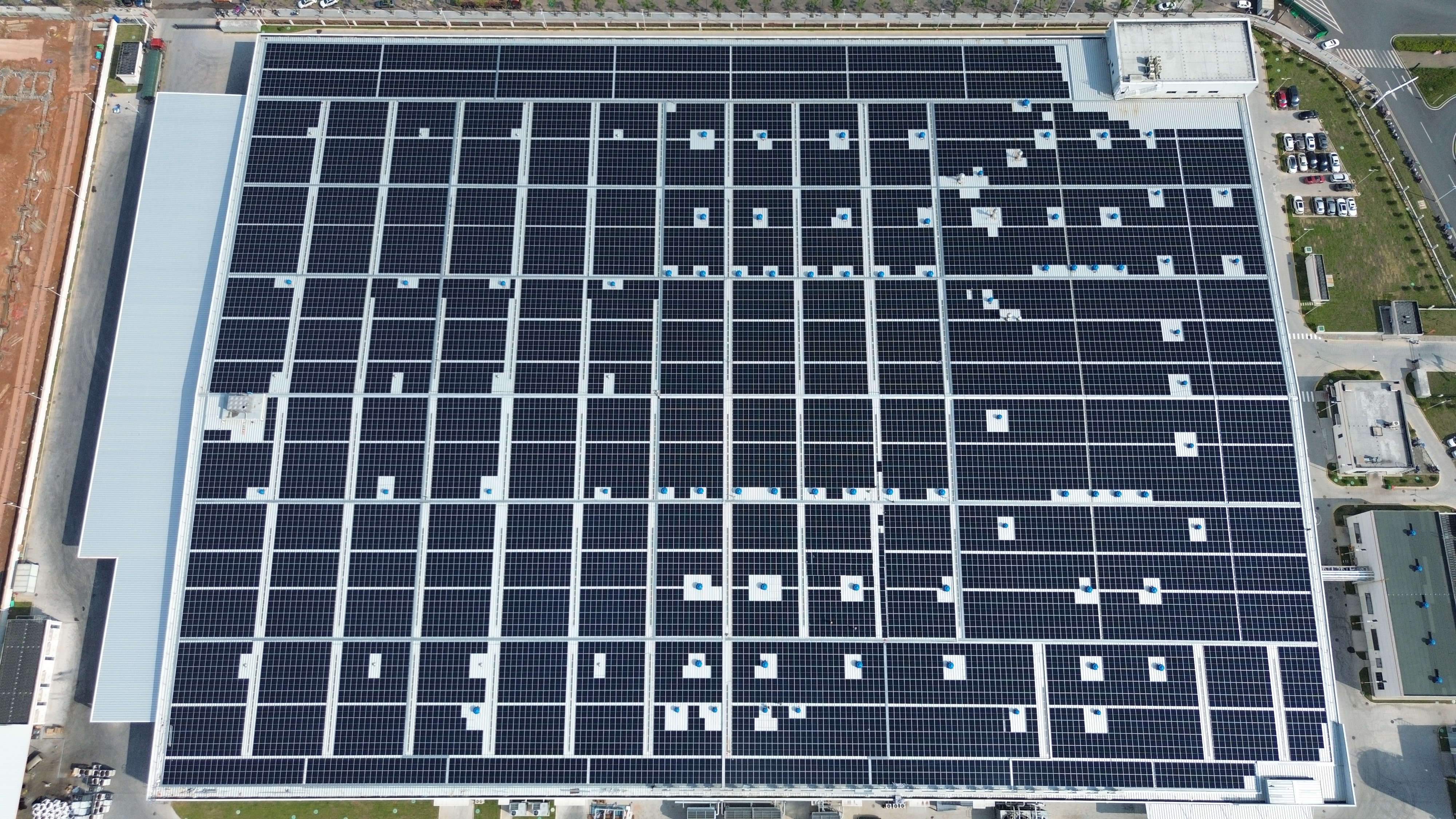 项目直流侧总装机容量1.358MWp,交流侧装机容量1.15MW。在降低企业用电成本的同时每年可节约标准煤约394.86吨,可减少CO₂排放量约1082.04吨、SO₂排放量0.109吨、氮氧化物排放量0.175吨。